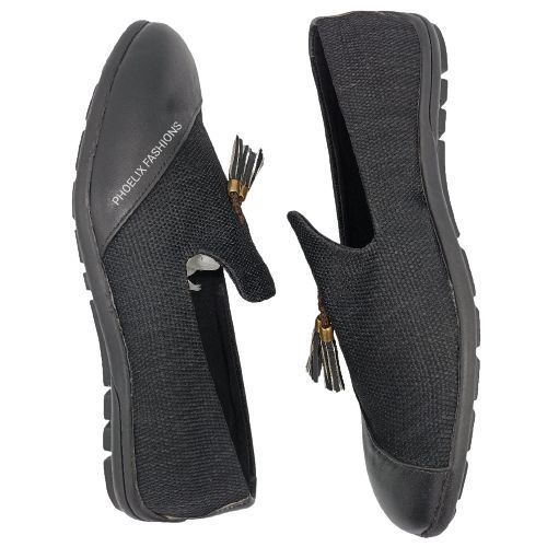BLACK - Elegant Unisex AFRICAN Ankara Loafers/NATURAL RUBBER SOLE SHOES.