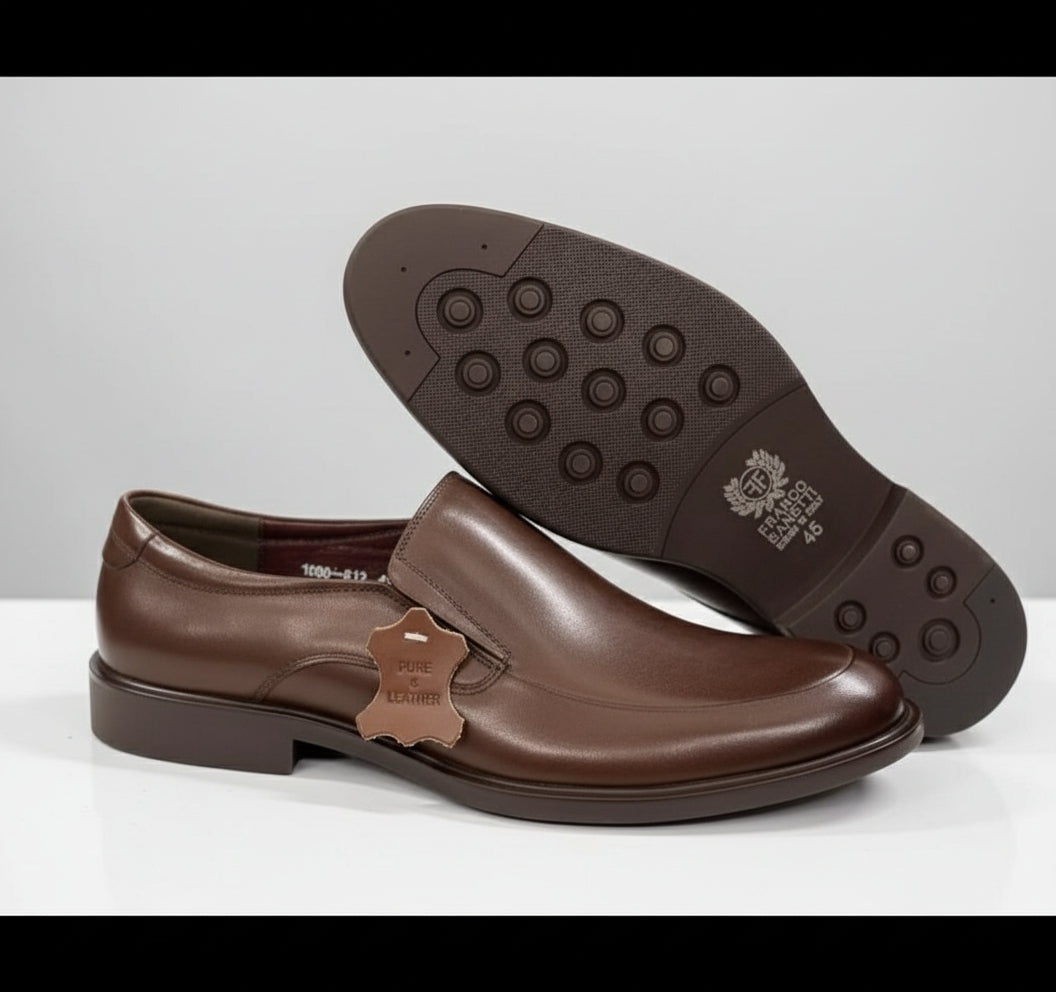 These Franco Bannatti smooth loafers are crafted from 100% pure leather, giving you a soft, premium feel and a glossy natural finish that tells a story of craftsmanship. The design is intentionally minimal — a single-piece vamp that looks sharp without trying too hard.